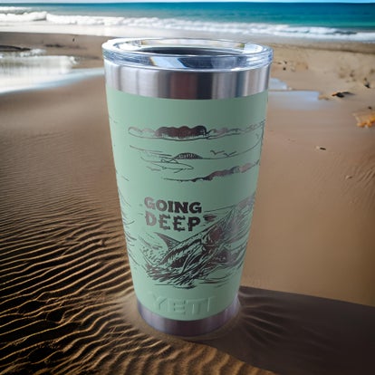 20oz Yeti RamblerGoing Deep Fishing YachtSea Foam Green
